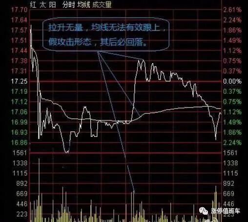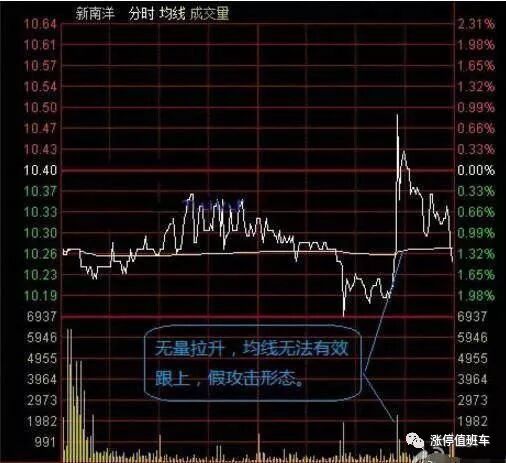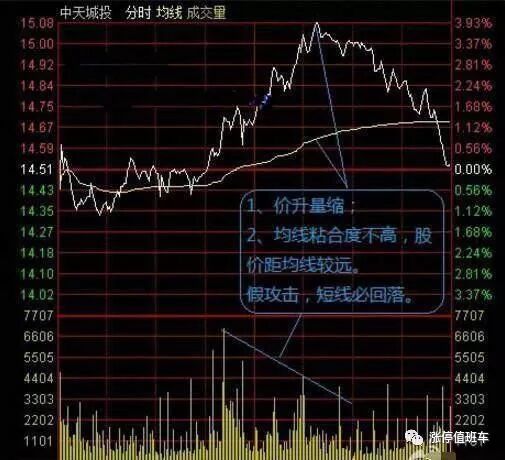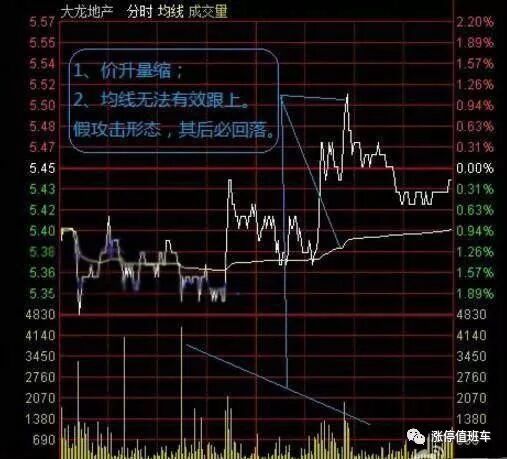 2、均价线,以后都简称均线。真正的攻击形态是股价上涨,均线也跟着上涨的,均线跟股价的距离不能太远,也不要越来越远,最强的攻击形态,是均线紧贴股价一起上涨,两条线粘合度很高。假的攻击形态,或者说是均线背离状态,这是股价上涨,均线不能有效的跟上,距离很远。