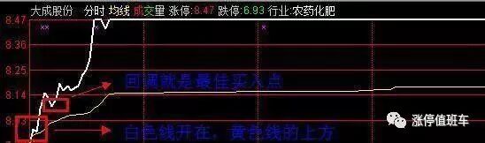 1)当白色线开在黄色下线下方时,首先会突破分时图的黄线,再回调跌破蓄势,当再次上冲,突破分时图的黄线时,就有很大概率选择出一只涨停股。