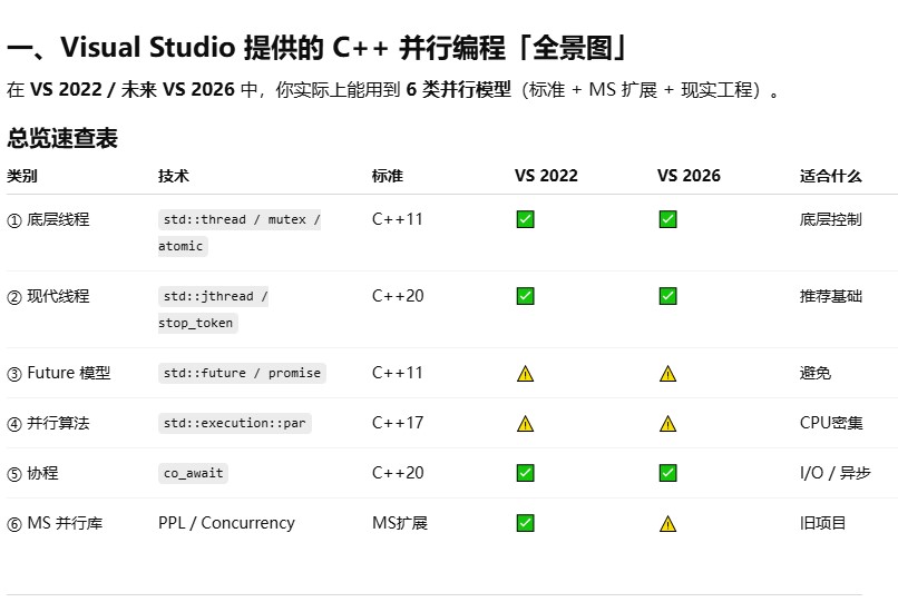 VS2026(MSVC v14.50 + /std:c++23 或 /std:c++latest)